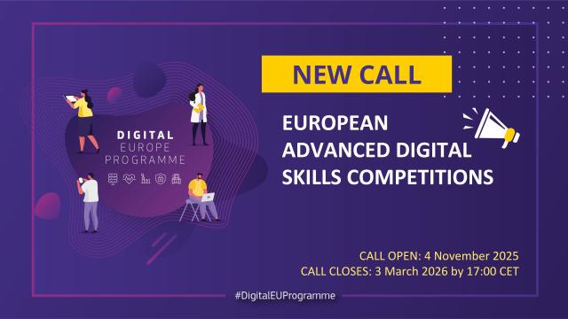 The European Health and Digital Executive Agency (HaDEA) has launched the European Advanced Digital Skills Competitions (DIGITAL-2026-SKILLS-09-COMPETITIONS) under the Digital Europe Programme. The initiative aims to engage young Europeans in cutting-edge digital technologies through a series of six EU-wide competitions in AI, Virtual Worlds, Quantum, Semiconductors, Destination Earth and one additional area chosen by the consortium.