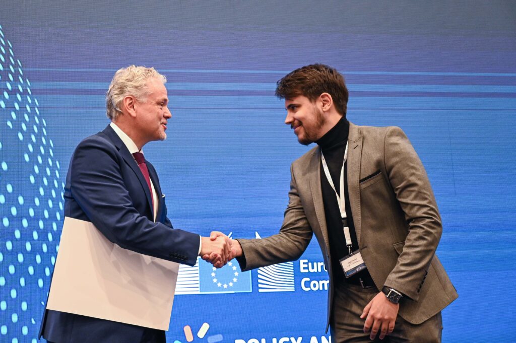 The ceremony, held in Podgorica on 20 October 2025, was meticulously planned to focus on high-level recognition of the innovators’ achievements. After a brief introduction of each research or innovation project by Signe Ratso, Deputy Director-General for Research and Innovation at the European Commission, each innovator or their academic partner received a token of recognition, along with a handshake and an official photo with Johann Sattler, Ambassador of the European Union to Montenegro. The awards presentation Innovators’ Ceremony was concluded with a group photo.