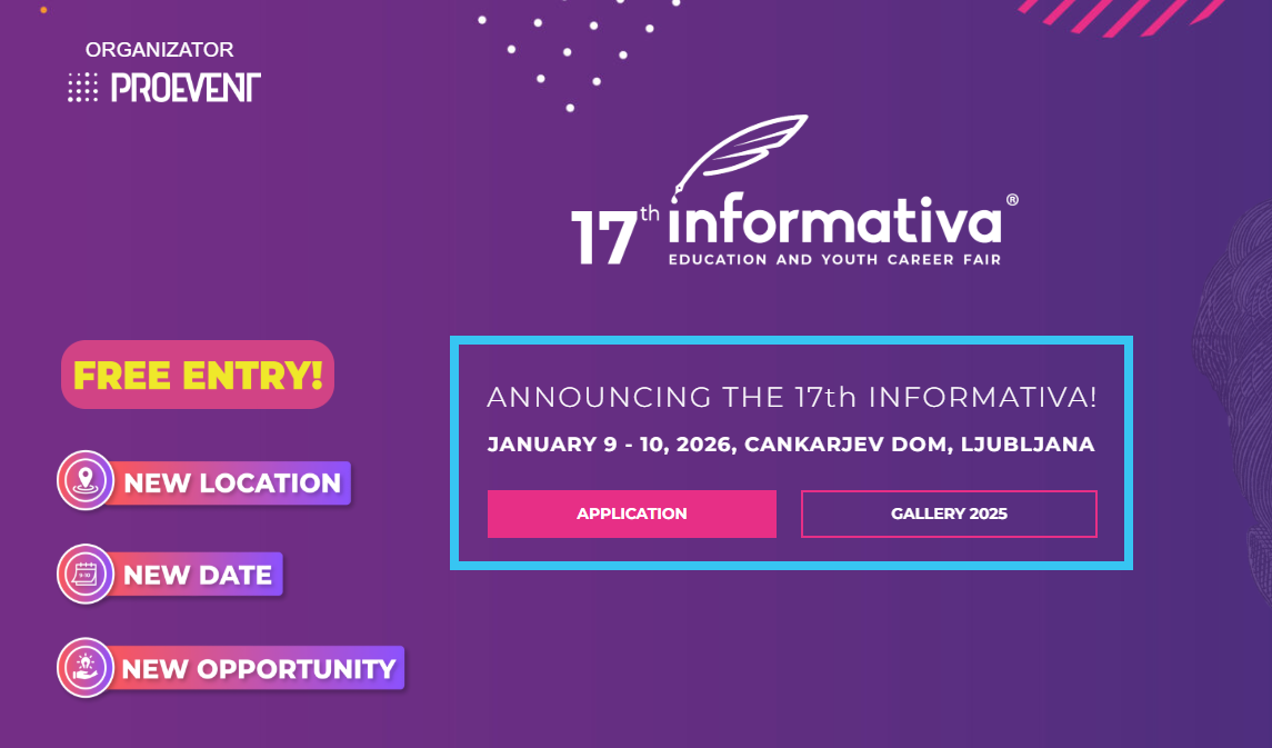 In 2026, Informativa will once again offer a unique opportunity for you to present your organization, as visitors can obtain all relevant information firsthand in one place. The fair is intended for primary school pupils (upper grades), secondary school students, university students, scholarship and first-job seekers, parents, teachers, professors, career counselors, youth workers, and anyone interested in further education and training. Informativa helps a large number of attendees answer the question “What’s next?” Many find valuable information about scholarships, employment opportunities at home and abroad, retraining programs, and other topics related to education and employment.