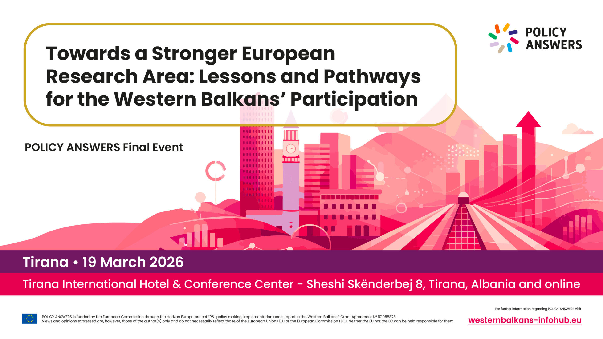 The POLICY ANSWERS project will conclude with a public event in Tirana titled “Towards the European Research Area: Lessons and Pathways for the Western Balkans.” The event will bring together policy makers, experts, researchers and key stakeholders from across the Western Balkans and the European Union to reflect on the project’s achievements and future perspectives for regional cooperation.