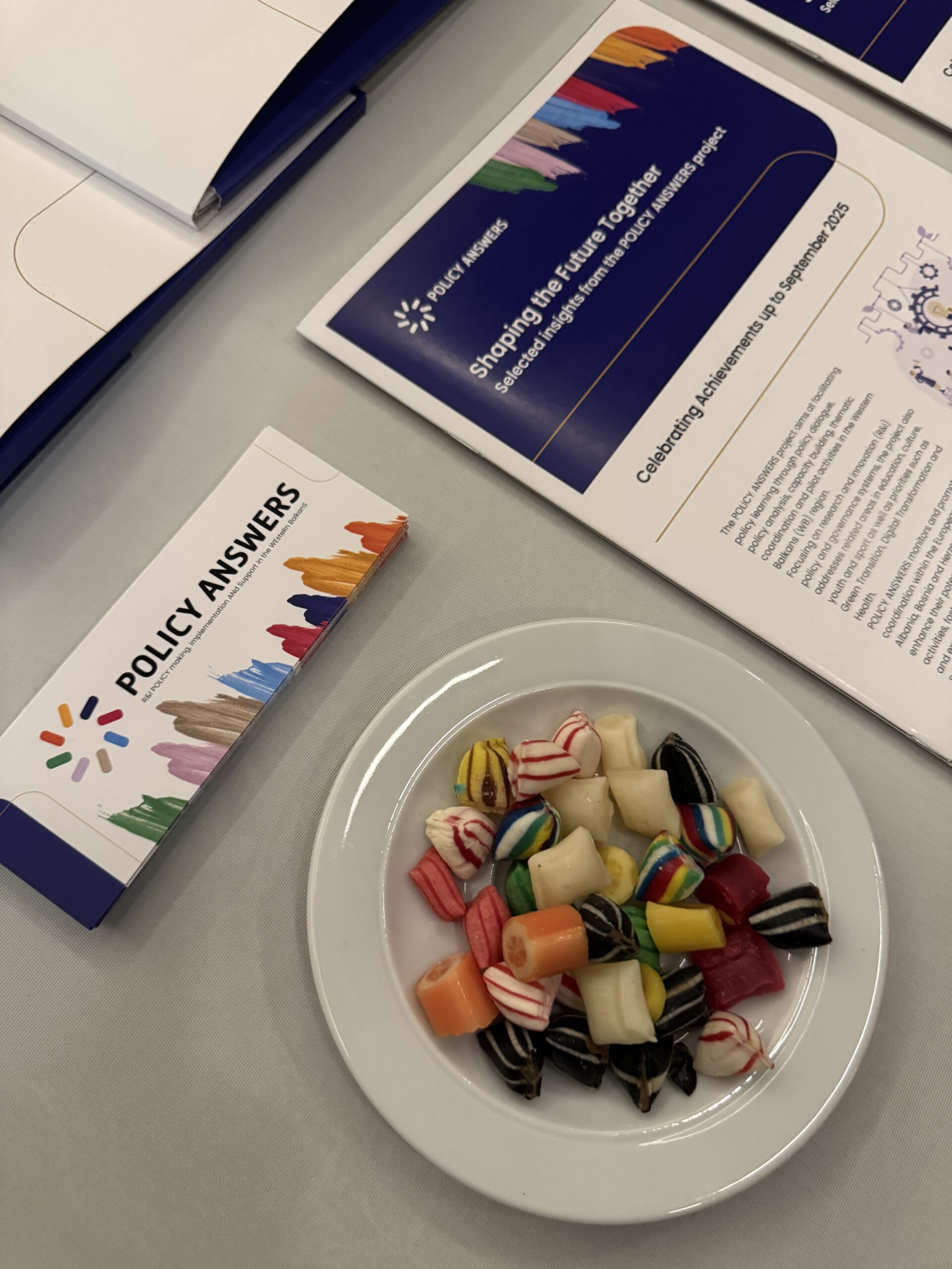 The event started with a welcome dinner on Sunday 19 October. POLICY ANSWERS materials were made available for the participants at the registration, for example our updated project brochure POLICY ANSWERS Achievements up to September 2025 and the Western Balkans Agenda Monitoring Cards in six different fields released in July 2025. We also distributed our Policy Brief WB Monitoring and Reporting Challenges.