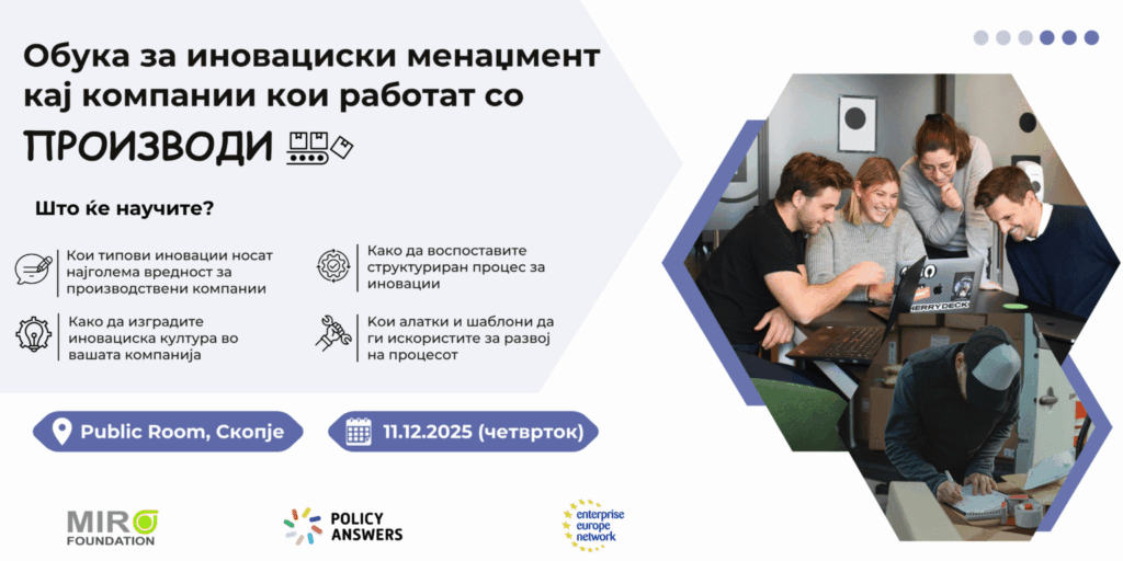 Source: https://mir.org.mk/obuki-za-inovaciski-menadjment-kaj-kompanii-koi-rabotat-so-proizvodi-i-uslugi/