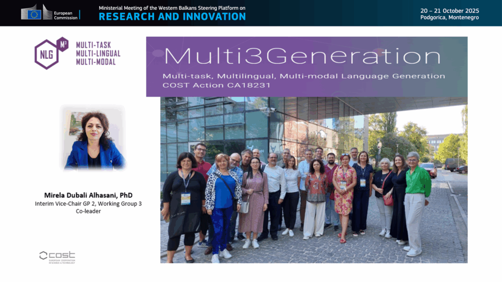 “My journey with Multi3Generation COST Action began in 2019, when I had the honour of representing Albania for the first time as a Management Committee Member, interim Vice-Chair, and co-leader of a working group. It was a transformative experience that opened opportunities for collaboration, organisation, exchange and leadership while raising Albania’s visibility along with my institution in the European Research Area.